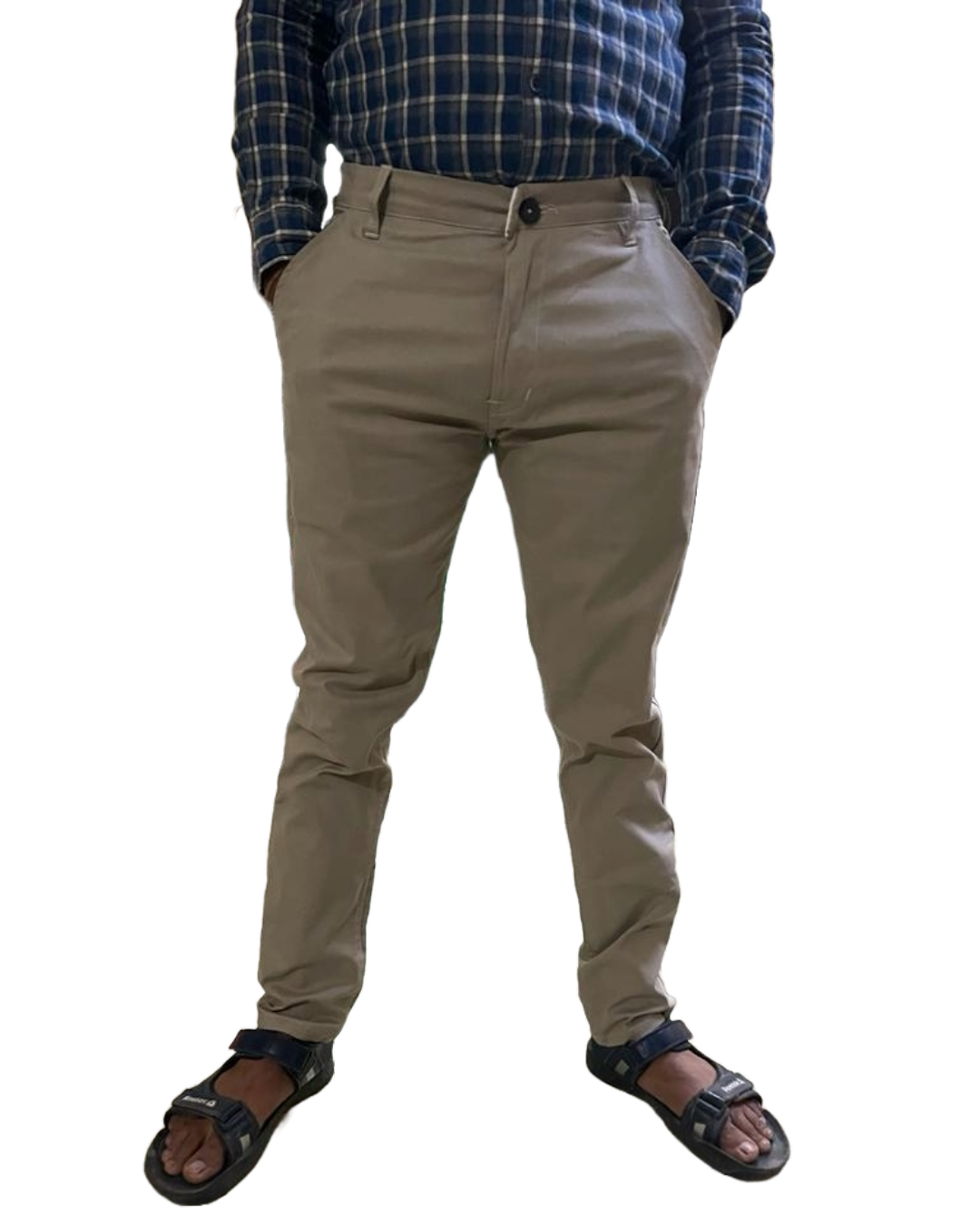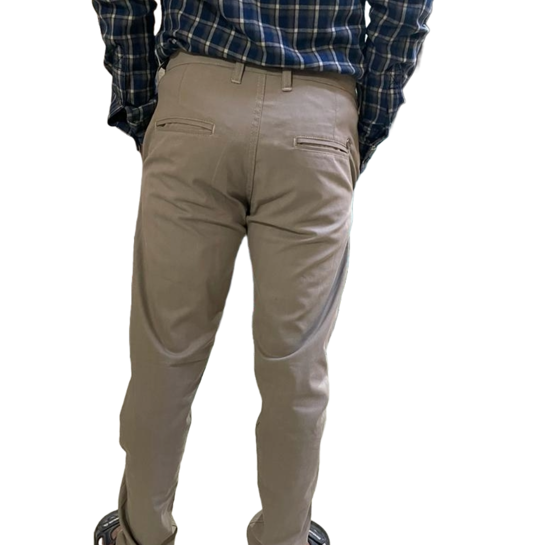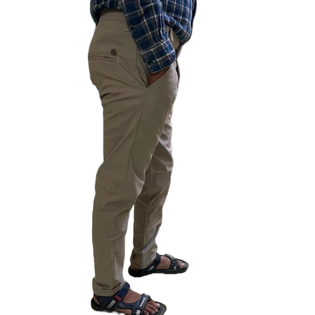 Self-Design Light Gray Men Cotton Trouser with stretchable